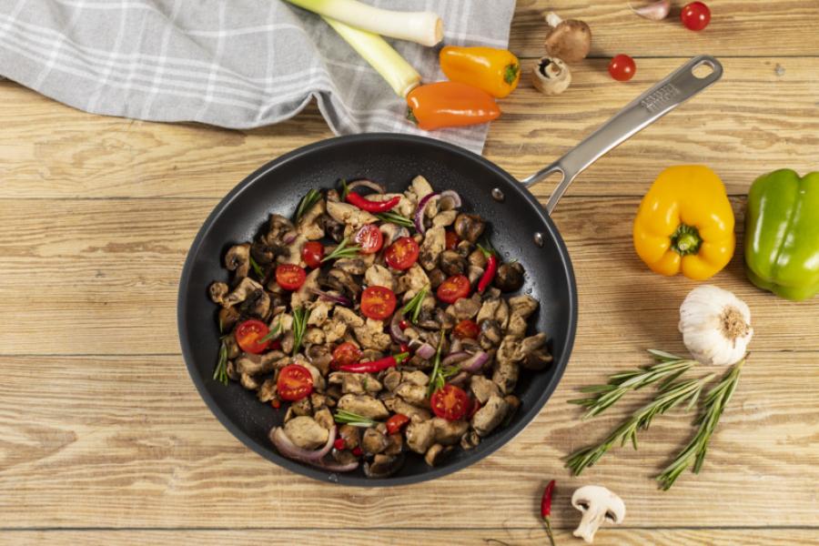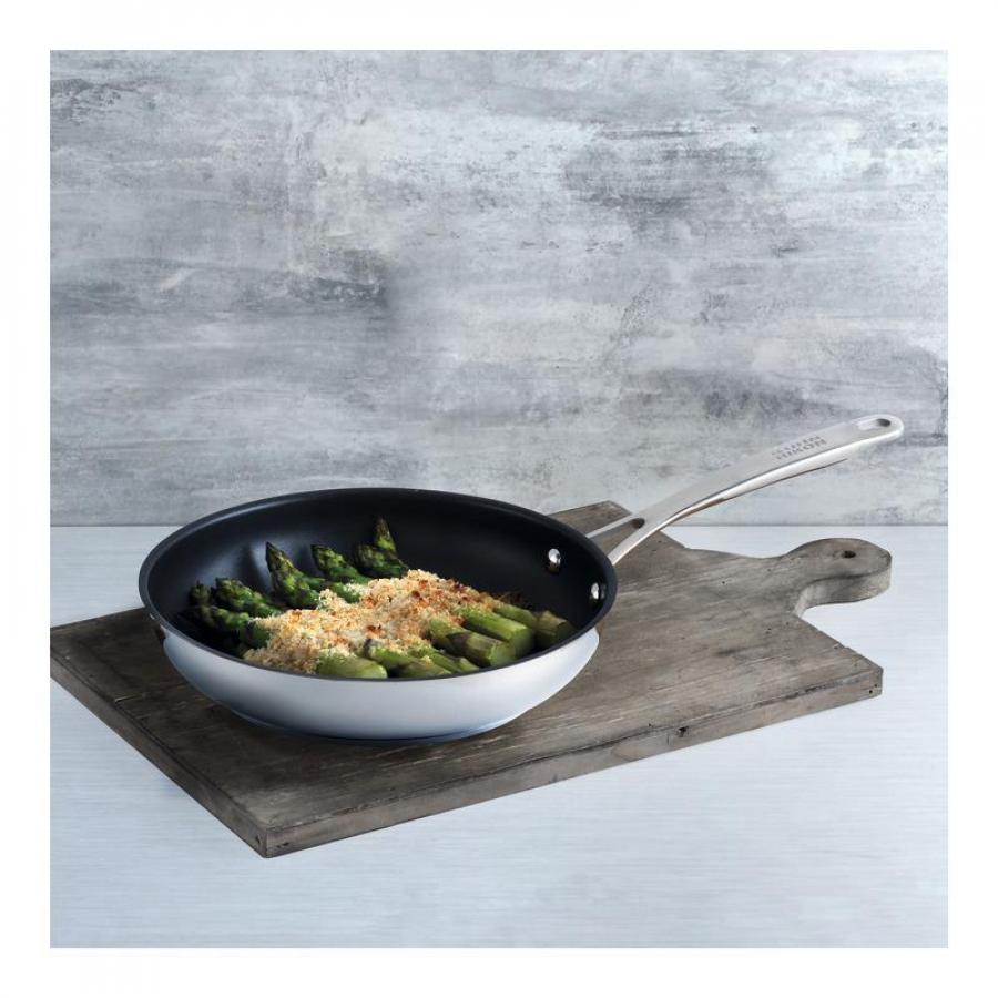 Die Allround Bratpfanne ist dank ihrer dreilagigen Antihaftbeschichtung mit Titanpartikeln vielfältig einsetzbar und eignet sich für fettreduziertes Braten. Durch den Einsatz von Edelstahl verkörpert sie Eleganz und Widerstandsfähigkeit. Ausserdem ist sie sehr pflegeleicht, kann auf allen Kochfeldern inklusive Induktion eingesetzt werden und ist im Backofen hitzeresistent bis zu 240°C.. Da sie in verschiedenen Grössen erhältlich ist, gibt es für jeden Haushalt das passende Model.