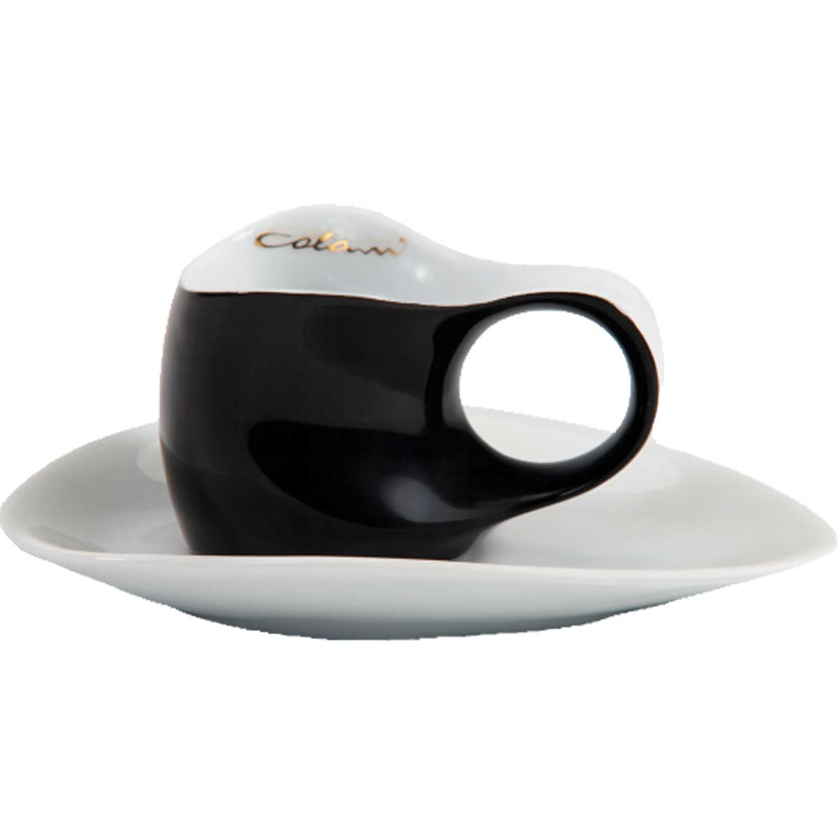 Espressogenuß für 2 Personen mit den schwarzen Luigi Colani Espressissimo Tassen und weißen Untertasse.n