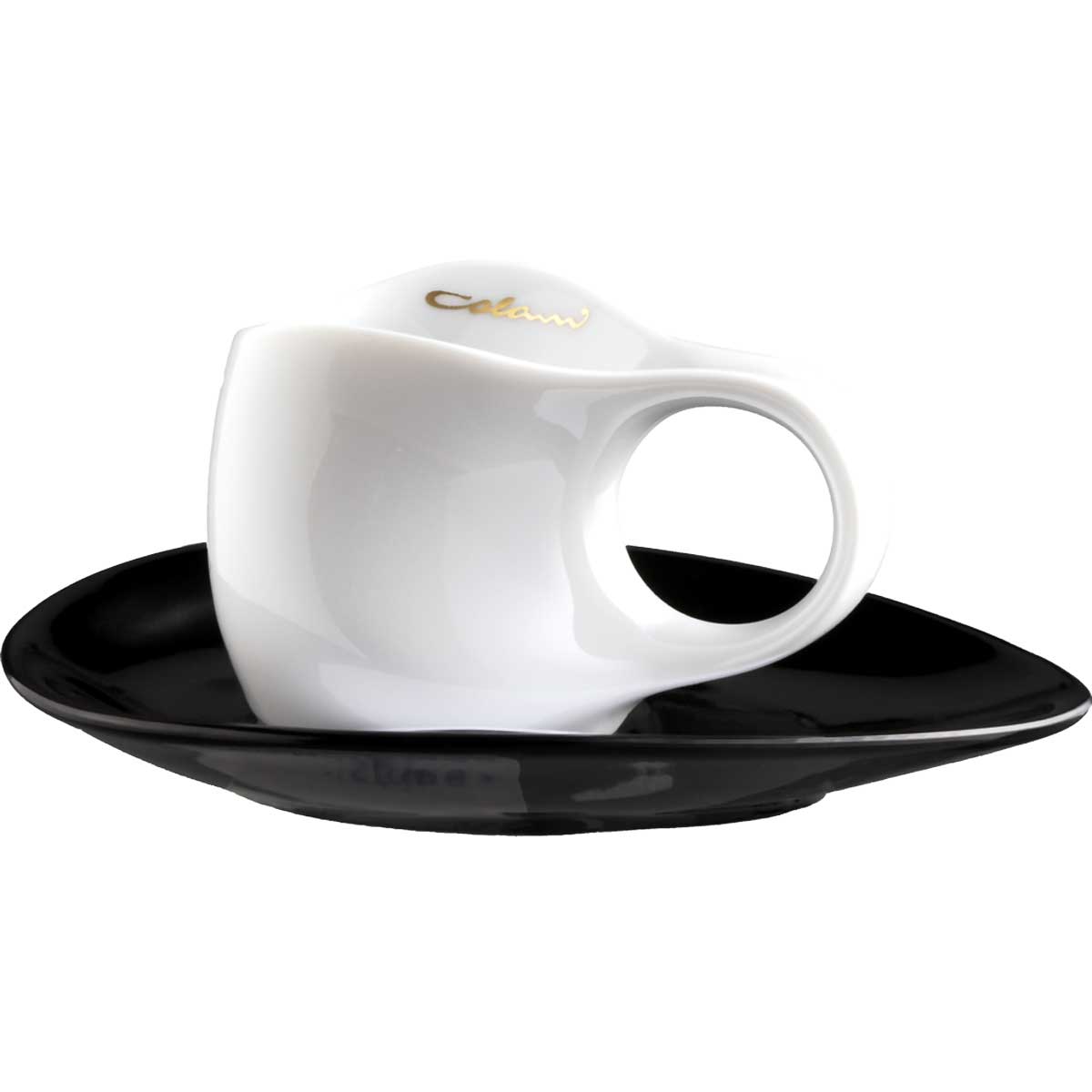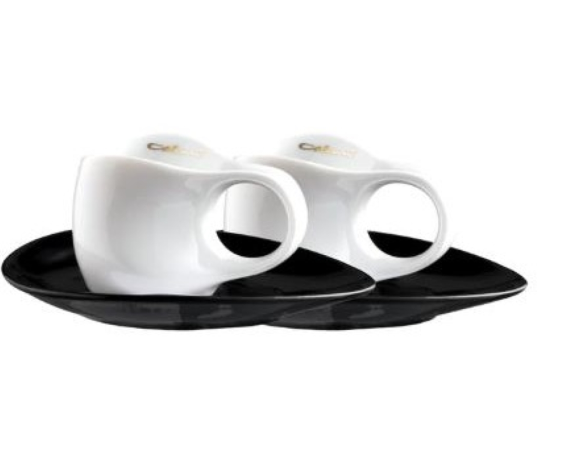 2 Tassen karamell 2 Untertassen schwarz oval . Volumen: 0,04 l