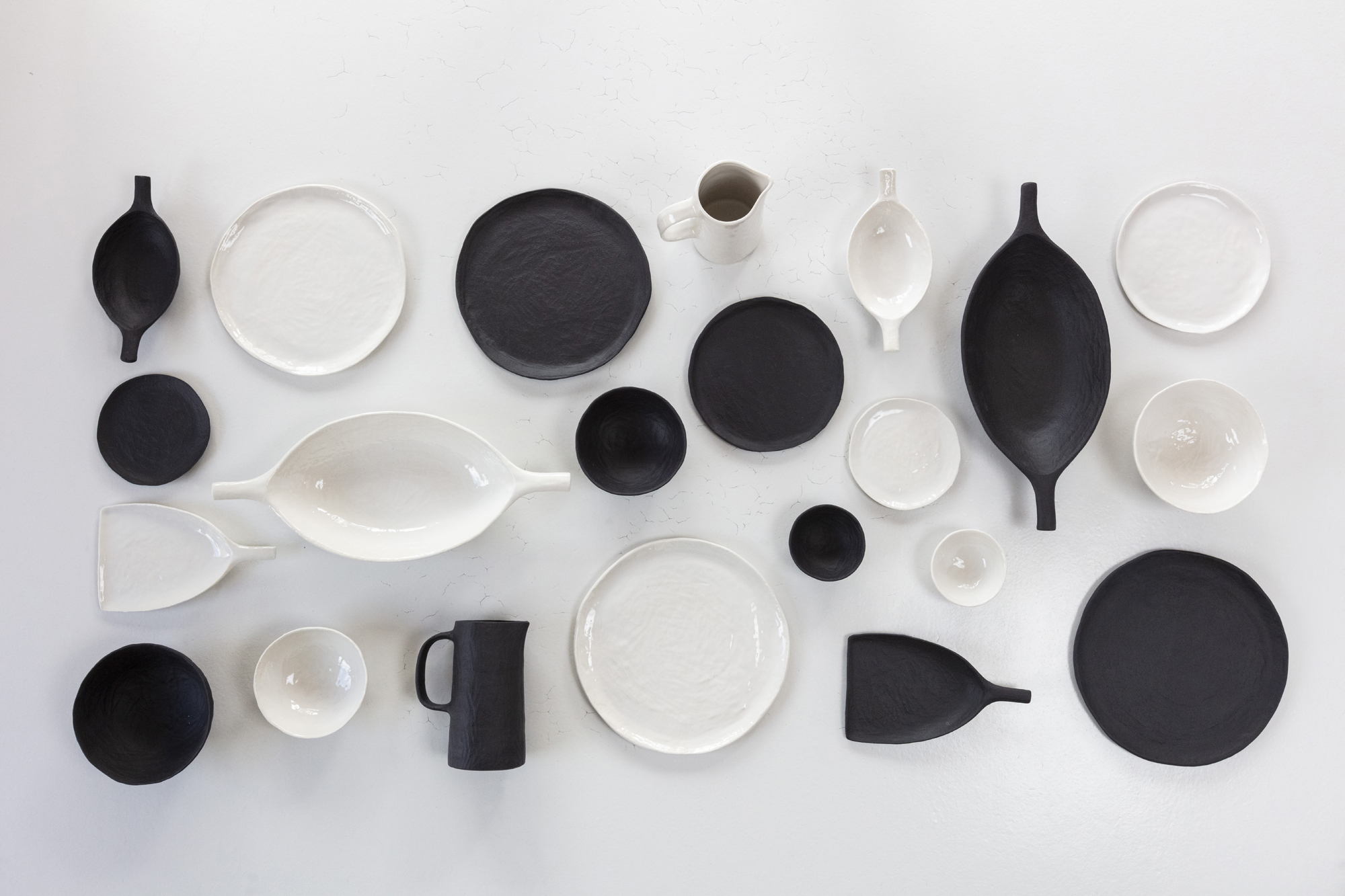Die Yli-Servierschale ist in zwei edlen Ausführungen erhältlich: entweder in komplett durchgefärbtem, schwarzem Porzellan, das durch seine Tiefe und Eleganz besticht, oder in einem seidig matten Alabasterweiß. Beide Versionen beeindrucken durch ihre einzigartigen handgefertigten Texturen und verleihen jedem gedeckten Tisch einen Hauch von Exklusivität.